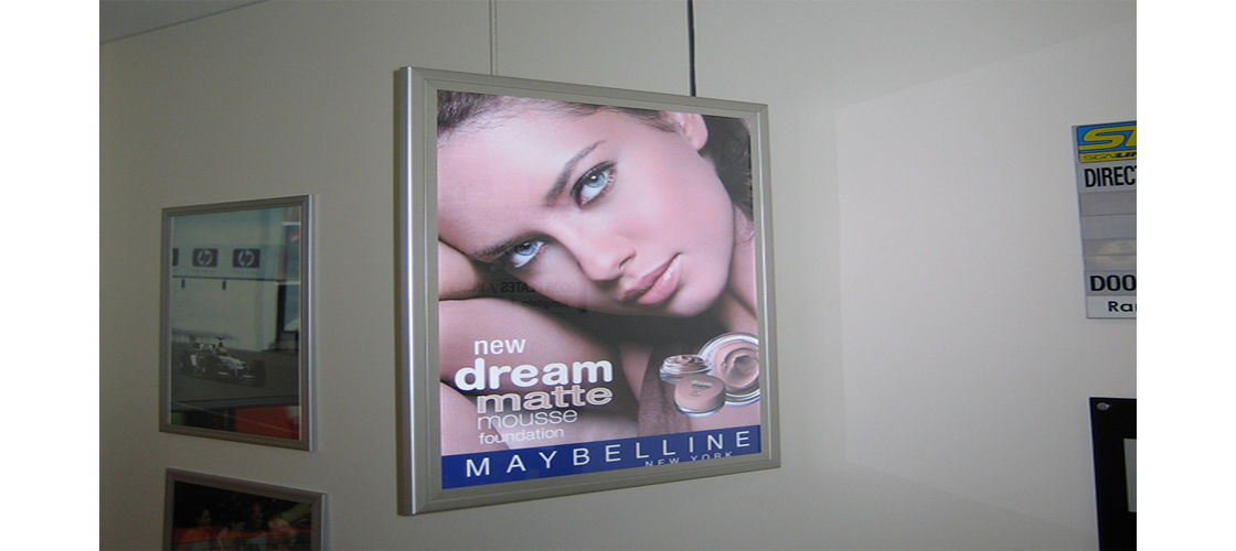 Koriste se u kombinaciji sa klik ramovima i uglavnom se postavljaju na ulaznim staklenim vratima ili izlozima (marketi, banke, zlatare, mesara, butici itd). Sa unutrašnje strane na staklo se lepi (duplofan trakom) klik ram, a sa spoljašnje strane na isto mesto se lepi (duplofan trakom) slide in ram. Posteri se menjaju laganim otvaranjem klik lajsni (na klik ramu), umetanjem postera okrenutih leđima (jedan prema drugom) i zatvaranjem lajsni. Dostupni format: A4.