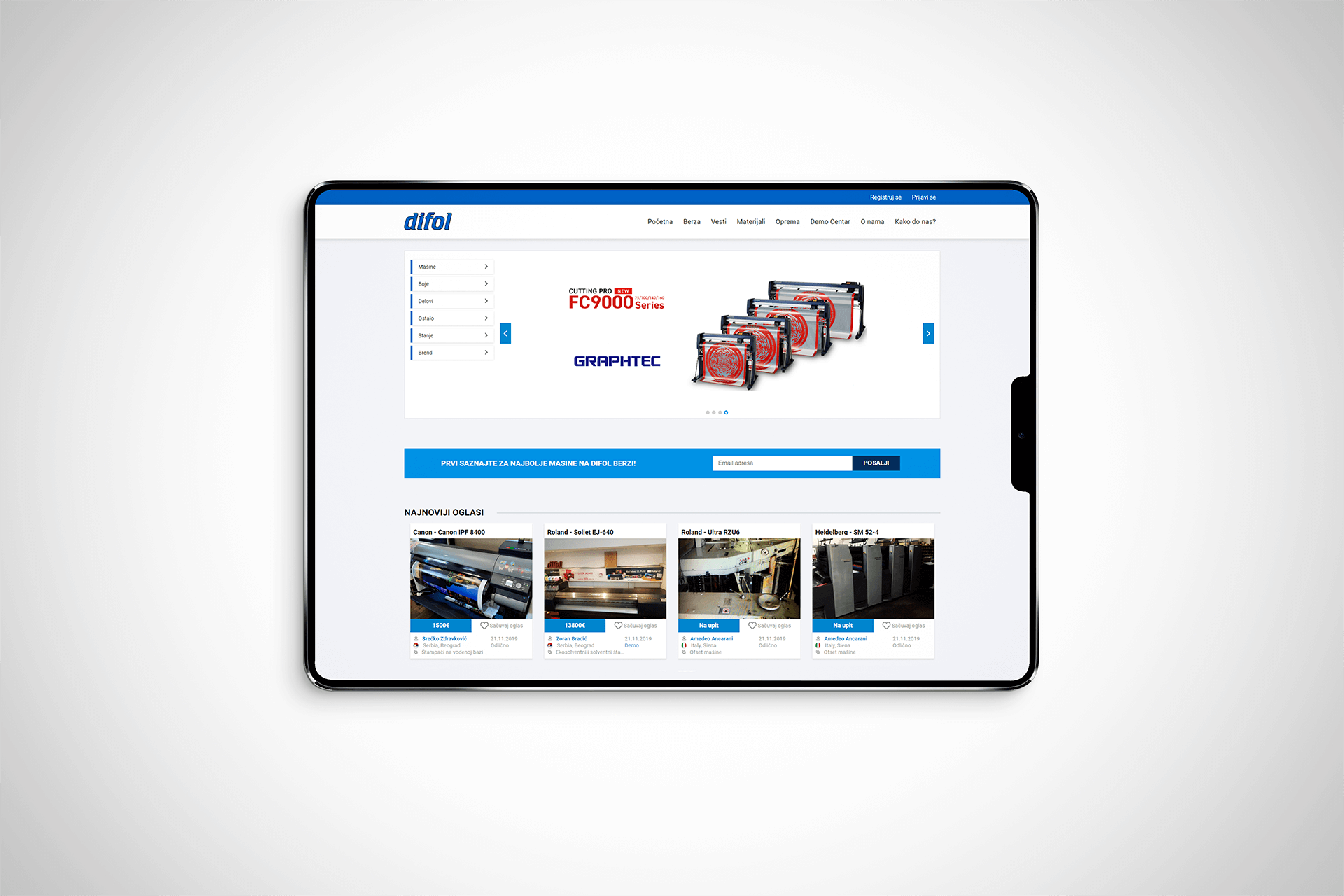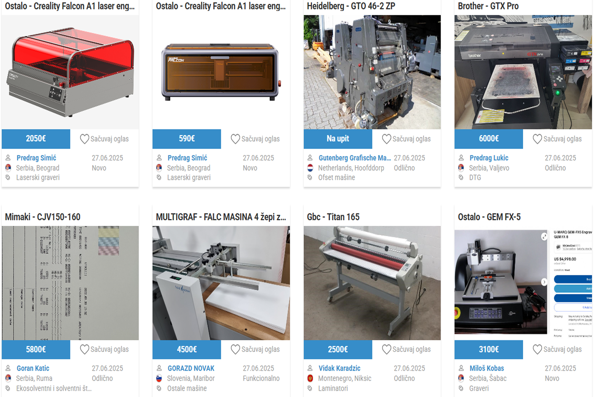 Grafičke mašine na jednom mestu. Široka ponuda opreme svake vrste za grafičku industriju iz celog regiona dostupna na jedan klik
