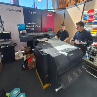 Roland je na sajmu predstavio najnoviji UV štampač MO-180, najnoviji DTF TY-300 sa šejkerom i SG3-540 TrueVIS Print&Cut.