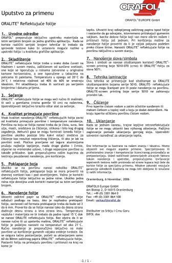 Preporučuje se upotreba ORALITE ® mastila serije 5010 za sito štampu. Transparentni sloj nije neophodan.