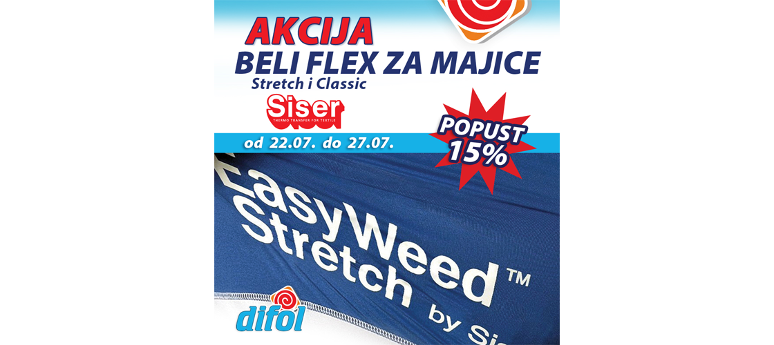 Beli flex materijal, za kater isecanje i apliciranje na tekstil, kod nas na Akciji! Iskoristite priliku da u narednih desetak dana ( do kraja meseca ) kupujete ovaj materijal po 20% nižoj ceni. Materijal je tanak, mekan na dodir i dobro upada u tekstil, pružajući jednostavno uklanjanje viška materijala i sam rad. Pogodni materijali za upotrebu, pamuk, poliester i mešavina ovih materijala. Za više informacija kontaktirajte nas info@difol.net.